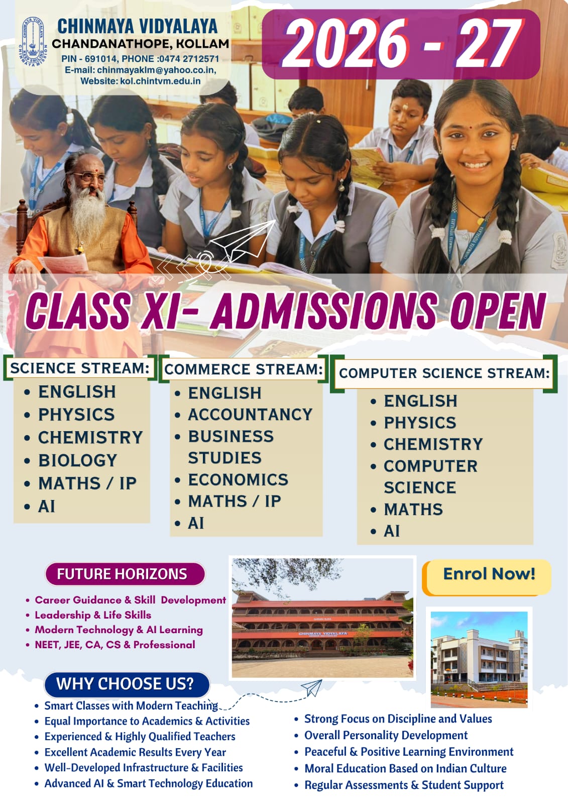 We are a forward-thinking school aiming to prepare our children and students for a rapidly changing world by equipping them with critical thinking skills, global perspective, and respect for core values of honesty, loyalty, and compassion, leading to personal, physical, moral and spiritual development. Developing these skills is the corner stone of the education we offer following the Chinmaya Culture. Students will have success for today and be prepared for tomorrow. In the next two years the school will improve reading habits of each individual from Primary classes onwards and activities related to reading will also be included.